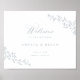 Eleganter Leaf Zweig Botanische Dusty Blue Wedding Welcome Poster Sign. Traditionelles klassisches Begrüßungszeichen