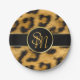 Elegante Leopard Print Monogram Script Paper Plate Pappteller