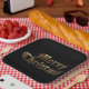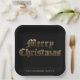 Alte englische Buchstaben frohe Weihnachts-Party Schwarz-Gold-Papier-Teller, mit Imitate Gold Old English Typografie und Ihrem Text.