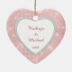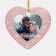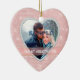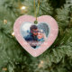 Dieses elegante Ornament besticht durch ein besonderes Foto in einem rautenförmigen Rahmen eines Imitats vor einem hübschen Juwel wie leichterem rosa Hintergrund mit winzigen Sternlichtern. Ihr Text ist weiß auf einem hellrosa Banner, der in Gold gerahmt ist. Die Rückseite des Ornaments hat ein weißes, herzförmiges Feld mit mehr Textfeldern, die Sie anpassen können. Ein schöner Sake für diesen sehr wichtigen Ersten Valentinstag zusammen!
