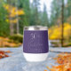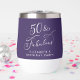 50 & Fabulous - Toast to a Life Well! Eleganter lila Thermalweintumbler für ihre 50. Geburtstagsparty mit "50 & Fabulous" in einer stilvollen weißen Kalligraphie-Schrift und ihrem Namen in schlichter Weißschrift.