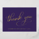 Elegante lila 90. Geburtstagsparty Dankeschön-Karte, die "Danke" in einem schicken Kalligraphieskript in Ihrer Wahl von Original Gold, Silber oder Rose Goldfolie gerendert. Auf der Rückseite personalisieren Sie Ihre Danksagung und fügen Sie Ihren Namen in einem signaturähnlichen Skript hinzu
