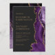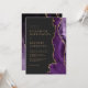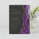 Die lila Aquarellgrenze mit vergoldetem Imitat-Glitzer verleiht dieser eleganten, modernen Hochzeitseinladung den rechten Rand. Der anpassbare Text kombiniert goldfarbene Serifen, Copperplate und kursiv Schriftart auf einem schwarzen Tonschiefer. Auf der Rückseite ist ein lila und goldenes Design zu sehen.