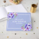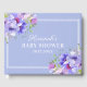 Stilvolles Gästebuch mit Duschkabine im Frühling mit botanischem Blumenrahmen aus lila und rosa Blume auf grünem Hintergrund. Passen Sie das Gästebuch mit dem Namen des Mama-to-be- und Baby-Duschdatums an.