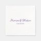 Personalisierte Lila und weiße Skriptname und Datum Hochzeitspapier Napkins. Elegantes, klassisches, minimalistisches Design.