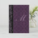 Elegante, Lila und schwarze mit Monogramm und individuell anpassbare Hochzeitseinladungen. Personalisieren Sie diese Einladungen mit Ihrem ersten auf der Vorderseite und detaillierten Veranstaltungsinformationen auf der Rückseite. Machen Sie es sich selbst, indem Sie auf die Schaltfläche Anpassen klicken.