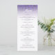 Diese elegante Hochzeitskarte bietet einen lila Hintergrund, der mit einem dekorativen Damast-Design an der Spitze, gepaart mit einer stilvollen, weißen Schriftzeichen-Typografie und einer raffinierten und verzierten Präsentation geschmückt ist. Das Layout unterstreicht ein raffiniertes, mehrgängiges Hochzeitsessen mit frischen Bio Vorspeisen, eine Auswahl an Fleisch vom Grill, Kräutermedaillons oder Mahi-Vorspeisen. Es gibt eine große Auswahl an Mandeln und Vanille-Hochzeitskuchen, die den Empfängen eine zeitlose und elegante Wahl bieten.
