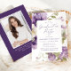 Feiern Sie den Meilenstein Ihres Absolventen mit unserer Vortragsveranstaltung "Elegant Lila Watercolor Blume"! Mit fesselnden Farbtönen lila und grün, die durch moderne Schriftzeichen lila betont werden, strahlt diese Einladung Raffinesse aus. Außerdem kehrt es zurück, um neben den wesentlichen Details wie Name, Schule und Abschluss das Foto Ihres Absolventen anzuzeigen. Ideal für High School und Uni-Abschluss, ist es eine stilvolle Art, ihre Leistungen zu ehren.
