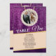 Elegante, Lila Funkelnd Foto Seating Chart Card Greifen Sie sich ein einzigartiges, modernes und elegantes Sitzdiagramm, das mit Glitzer, Glitzern und einem golden/diamond Rahmen ausgeliefert wird, in dem Sie das Pärchenbild hinzufügen können. Das Design ist minimalistisch, aber so elegant und elegant mit einem goldenen Akzent und einer Touch Kalligraphie-Skript auf der Anzahl der Tisch.