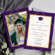 Klassische formelle elegante Stil lila-weiß Graduiertenparty Einladung mit goldenem geometrischem Rahmen und Grau Hut.