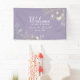 Vintages, elegantes, boho lavender lila Begrüßungsbanner mit vergoldetem silber- und goldfarbenem Blumenmotiv und modernem Kalligrafiebeschreiben.