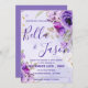 Elegante Lila Hochzeit mit blauen Wasserfarben Einladung