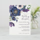 Diese wunderschöne und elegante Blumenzettel mit dunkelblauen, marineblauen und cremefarbenen Blume mit lila, cremefarbenem Hintergrund und Kalligraphie-Schrift passt sich leicht an Ihre Hochzeitsinformationen an. Ideal für den Winter, Frühling oder Sommerhochzeit. Design von T.K. Goforth.