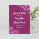 Diese elegante Blumenhochzeit erspart die Einladung zum Datum und ist ideal für eine moderne Hochzeit im Sommer. Das schlichte Design besticht durch hübsche lila orchid-Blume mit eleganter weißer Kalligraphie auf fett lila Hintergrund.