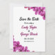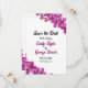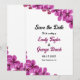 Diese elegante Blumenhochzeit erspart die Einladung zum Datum und ist ideal für eine moderne Hochzeit im Sommer. Das schlichte Design zeichnet sich durch lila orchid-Blume mit eleganter schwarzer Kalligraphie auf weißem Hintergrund aus.