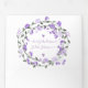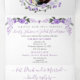 Enthält einen Schnitt und Postkartenversand UAWG. Drei-fach-elegante englische Cottage-Kern-Ästhetik Bauernhaus Kranz draußen in einem eleganten Lila Peony Floral Hochzeitseinladung. Hochzeitsthemen in Boho, im Freien, Zeltgarten.