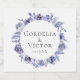 Ein eleganter Blumenrahmen mit lila Rose in Aquarelltönen umrahmt dieses schicke winterliche Hochzeitszittel mit einer wunderschönen Blumenkreisform, umgeben von violetten Blume und lavendelfarbenen botanischen Blätter. Die perfekte Dekoration des Party mit den Namen der Ehepaare und dem Hochzeitstag in der Mitte.