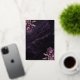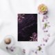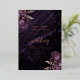 Diese elegante Hochzeitseinladung enthält lila Blumenbouquets, die mit Rosen-Gold-Folie-Blattwerk in zwei Ecken auf einem Hintergrundbild von lila Aquarell-Achat hervorgehoben werden. Der anpassbare Text kombiniert echte Rosen-Gold-Folie-Serif-, Kursiv- und Handschrift-Schriftarten. Die Rückseite zeigt ein passendes lila und Rosen-Gold-Blumen- und Achat-Design.
