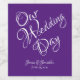 Elegantes, lila Weinflaschenlabel, das Ihre Gäste auf den Tischen des Empfangs mit Weinflaschen schmückt.
