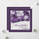 Lila und silberne Weihnachtskarten mit einem Sack voller Weihnachtsgeschenke. Personalisieren Sie diese elegante lila Weihnachtskarte, um diese Weihnachtszeit zu versenden.