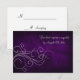 Eine stilvolle, reich aussehende Hochzeitskarte mit hübschem silberfarbenem Swirl und Text auf einem lila, eleganten Hintergrund mit royalem Farbverlauf. Die Rückseite der Antwortkarte ist weiß, damit der Befragte leicht markiert werden kann. Der gesamte Text ist anpassbar. Diese Karte passt zu den "Elegant Lila Silver Monogram Wedding Invitations" in meinem Geschäft.