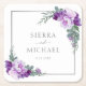 Hier ist eine großartige Wahl für den Empfang bei Ihrer anstehenden lila- und silberfarbenen Hochzeit. Dieses Design besticht durch elegante Pfannkugeln und Rose in lila und violetten Farbtönen sowie durch eine trendige Eukalyptus-Blätterpflanze. Die Namen der Braut und des Bräutigams sowie das Hochzeitstag werden durch eine silberne Folie mit Imitaten umrahmt. Wenn Sie eine Frage zum Design haben oder dieses Design auf einem anderen Produkt sehen möchten, schreiben Sie mir bitte auf Zazzle. Design © Judith Schmidt.