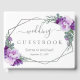 Elegante Lila und silberfarbene geometrische Hochz Gästebuch