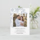 Elegante Line Gezeichnet Blumenblauer 2-Foto Hochz Save The Date
