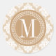 Elegante Linen Beige Damask Personalisiert Runder Aufkleber