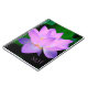 Atemberaubende lila Lotusblume in voller Blüte vor dunkelgrünem Laub auf personalisiertem Notizbuch.