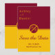 Diese elegante Bordeaux- und Goldhochzeit bewahrt das Datum für eine moderne Hochzeit und bietet ein schlichtes Design mit eleganter bordeauxfarbener Kalligraphie auf goldenem Hintergrund.