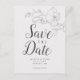 Elegante und rustikale Save the Date Postkarte mit handgezeichneter Abbildung von magnolischen Blume. Sie können auf der Rückseite der Karte zusätzliche Nachrichten und Informationen hinzufügen.