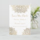 Elegante handgezeichnet, weiß und verglaste goldene Blumenmandala Save the Date Hochzeitseinladungen sind perfekt für jede klassische und raffinierte Zeremonie. Dieses exquisite, einfache, schicke, blendende Design ist ideal für das trendige und stilvolle Paar. Passen Sie dieses Design mit Ihren eigenen Nachrichten und personalisierten Informationen an. Alle Designs sind bedruckt