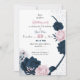 elegante Marine & Rosa Blume Geburtstag Einladung