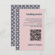 Elegante Retro Navy Blush Geometric Wedding Enclosure Card. Mit unserer individuell gestaltbaren Blush Navy Retro Geometric Mid Century Wedding Enclosure Card verleihen Sie Ihrem Tag eine Touch Eleganz. Mit einem QR-Code für den einfachen Zugang zu allen Hochzeitsdetails. Fügen Sie Ihre persönlichen Daten hinzu, indem Sie auf die Option "Personalisieren" klicken. Sie können auch ein eigenes QR-Codebild hinzufügen oder ein solches mit Zazzles Anpassungs-Tools generieren oder den Text löschen und ersetzen. Entdecken Sie die gesamte Kollektion für ein zusammenhängendes und stilvolles Hochzeitsthema.