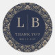 Dieser elegante Hochzeitsaufkleber zeigt einen anspruchsvollen marineblauen Hintergrund, der mit komplizierten Blumenmustern in weichen Beigetönen verziert ist. Das zentrale kreisförmige Design zeigt ein minimalistisches typografisches Layout mit klassischen Serifenschriften, das eine formelle und raffinierte Ästhetik vermittelt. Perfekt, um sich bei Ihrem besonderen Ereignis zu bedanken, kombiniert dieser Aufkleber luxuriöse Details mit klarer Lesbarkeit und ist somit die ideale Wahl, um Ihren Hochzeitsgeschenken oder -einladungen einen Hauch von Eleganz zu verleihen.