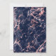 Diese elegante Hochzeitseinladung besticht durch ein marineblau-blaues Aquarelldesign in der Imitation von Marmor, der mit einer Folie aus vergoldeten Rose versehen ist und allmählich in den weißen Hintergrund verblasst. Das Wort "Hochzeit" erscheint in dunkelmarineblauer Schrift, der Rest in Serif-Hauptstädte. Das Marmormuster in Marineblau und Rose wird auf der Kartenrückseite wiederholt.
