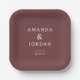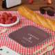 Diese elegante Hochzeitstafel zeigt einen ausgeklügelten bordeauxroten Hintergrund mit knackigem weißen Text in einer sauberen Serifenschrift und schafft so ein zeitloses und formelles Aussehen. Das Design ist minimalistisch und konzentriert sich auf die Namen "Amanda & Jordan" in der Mitte, mit anpassbaren Platzhaltern für Ort und Datum darunter. Seine einfache und dennoch raffinierte Ästhetik macht es perfekt, um Ihrer Hochzeitsfeier einen Hauch von Klasse zu verleihen. Ideal für diejenigen, die unterschätzte Eleganz schätzen, dient dieser Teller sowohl als funktionales Objekt als auch als schönes Erinnerungsstück an den besonderen Tag.
