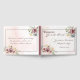 Das elegante Christliche Gästebuch von Wedding empfängt Sie mit wunderschönen Blume in Aquarellpeony in gedämpften Farbtönen aus staubiger Rose, Lila und Rosa mit Grün und Akzenten aus blau und gelb. Es ist mit einem silbernen Rahmen auf einem rosafarbenen Hintergrund bestickt. Inspiration Zitat auf der Rückseite ~ "Zwei Leben vereint in Freundschaft, zwei Freunde vereint in Liebe, Eine Liebe vereint in Christus."
