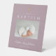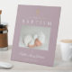 Elegante Mauve Cross Foto Boy Taufe Herzlich willkommen Pedestal Sign