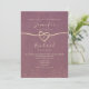 Einfach, elegant, minimalistisch, modern mauve lila Hochzeitseinladung mit Seilherz und handgeschriebener Schrift.