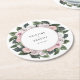 Diese individuellen botanischen Untersetzer fügen Ihrem Hochzeitsempfang eine elegante Touch hinzu. Dieses moderne Design-Template verfügt über einen runden Rahmen von handbemalten, rosa und lila Aquarell-Rose mit Grün. Personalisieren Sie mit Ihren Namen und Hochzeitsdatum in einer einfachen dunkelgrauen Typografie. Karo in unserem I Liebe Weddingz Shop um mehr zu erfahren. Entworfen von der Künstlerin Susan Coffey.