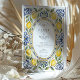 Mit dieser atemberaubenden Hochzeitseinladung bringen Sie Ihre Gäste in eine sonnenverwöhnte italienische Villa. Inspiriert durch den Charme der Amalfiküste bietet dieses Design eine exquisite, handbemalte Aquarellwand. Lebhafte gelbe Zitronen und üppige grüne Blätter sind kunstvoll in einem Blau-Weiß-Muster gewebt, das an klassische mediterrane, italienische oder spanische Azulejofliesen erinnert. Die kräftigen Kobalt-, aquamarinen und staubigen Blautöne bilden einen atemberaubenden Kontrast zu den hellen Zitrusfrüchten. Ihre Hochzeitsdetails werden elegant in einem ovalen Mitteloval dargestellt, gerahmt durch eine bezaubernde, terrakottfarbene gestrichelte Linie. Diese Einladung eignet sich ideal für eine Hochzeit in Urlaubsort, eine aufregende Sommerfeier oder ein Paar, das den Geist der europäischen Romantik erleben möchte.