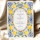 Elegante mediterrane Lemon & Blue Tile Hochzeit Einladung
