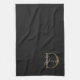 Elegante Midnight Black Mossy Gold Script Monogram Geschirrtuch