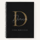 Elegantes Black Mossy Gold Script Monogram Notebook