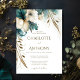 Elegante Minimal Blumengrün Aquamarin und Gold Hochzeit Einladung. Abstrakte Aquarellfarbe aquamarin und goldene Blüte auf weißem Hintergrund. Personalisieren Sie dies mit Ihren eigenen Daten, um es zu Ihrem eigenen zu machen.