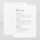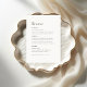 Stellen Sie Ihrem Hochzeitsempfang eine Touch von Eleganz mit dieser minimalen, detaillierten Menükarte vor. Diese Karte, die mit einer perfekten Mischung aus zeitloser Einfachheit und modernem Design gestaltet wurde, verleiht Ihrem kulinarischen Erlebnis eine raffinierte Eleganz. Das minimalistische Design erlaubt es, sich auf das Essen zu konzentrieren und gleichzeitig einen schönen und zusammenhängenden Stil für Ihre gesamte Hochzeitsdekoration zu bieten!