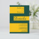 Die elegante, in Grün und Gold gehaltene Einschließkarte eignet sich perfekt für eine moderne Hochzeit und bietet elegante grüne Kalligraphie auf goldenen Streifen auf grünem Hintergrund.