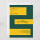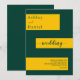Die elegante, grüne und goldene Hochzeitseinladung eignet sich perfekt für eine moderne Hochzeit, das schlichte Design zeichnet sich durch elegante grüne Kalligraphie auf goldenen Streifen auf grünem Hintergrund aus.
